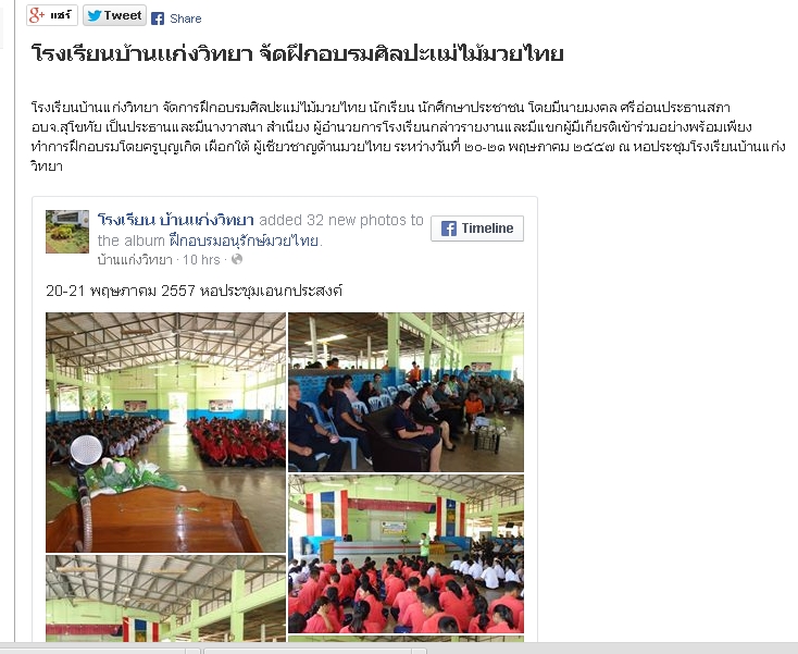 ปี 2557วิทยากรมวยไทย โรงเรียนบ้านแก่งวิทยา สพม.เขต 38