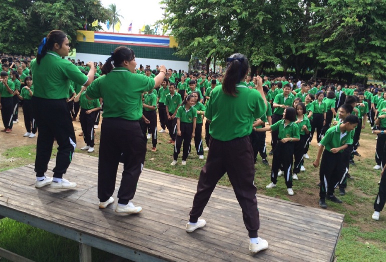 ปี 2558 ออกกำลังกายหลังเข้าแถวเคารพธงชาติ