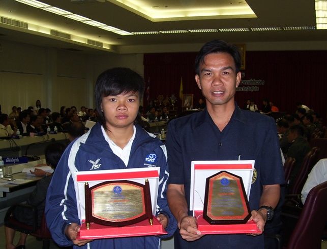โล่รางวัลครูผู้ฝึกสอนพร้อมนักกีฬานางสาวสุมิตรา โงกสูงเนิน
